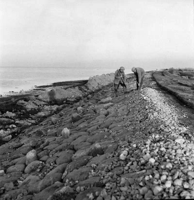 Lolland er sikret af diger mange steder, og digebyggeriet er fortsat helt op i nutiden. Her er det et dige ved Kastager, som blev bygget i 1956. Foto: Erik Hansen.